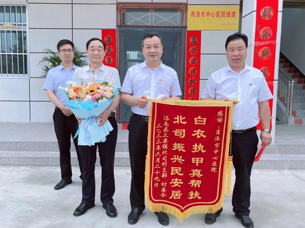 為切實(shí)鞏固拓展脫貧攻堅(jiān)成果,扎實(shí)推進(jìn)鄉(xiāng)村振興工作,值此中國(guó)共產(chǎn)黨建黨102周年之際,6月29日上午,商洛市中心醫(yī)院援建洛南縣三要鎮(zhèn)北司村黨群服務(wù)中心辦公樓交付儀式舉行。黨委副書記、院長(zhǎng)李銀山,黨委副書記、紀(jì)委書記李湛泉,三要鎮(zhèn)黨委書記姜偉峰,北司村“兩委”成員,駐村工作隊(duì),群眾代表等40余人參加。