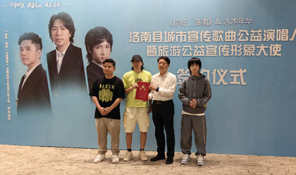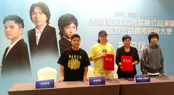 7月15日,中國內(nèi)地人文民謠歌唱組合“水木年華”和“漢字故里,避暑名城”洛南縣正式簽約,成為該縣“城市旅游”公益宣傳形象大使。據(jù)悉,“水木年華”將無償公益演唱洛南縣城市宣傳歌曲《你好,洛南》。
