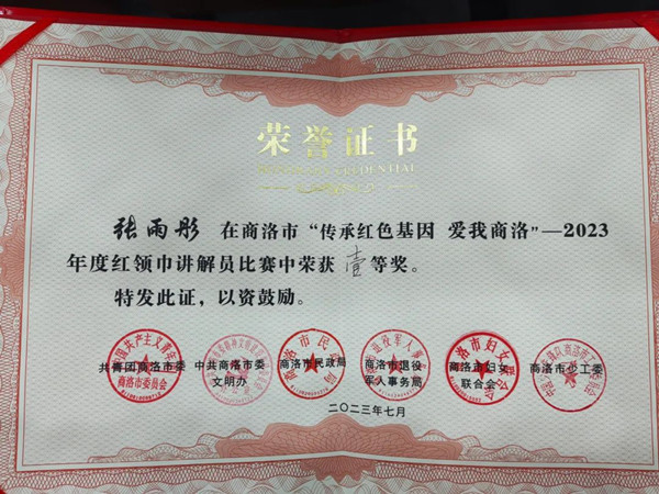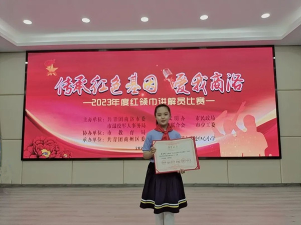 為深入學(xué)習(xí)貫徹習(xí)近平總書記關(guān)于少年兒童和少先隊工作的重要論述,貫徹落實《中共中央關(guān)于全面加強新時代少先隊工作的意見》,深化推進(jìn)黨史學(xué)習(xí)教育常態(tài)化、長效化,7月25日,由團市委、市委文明辦、市民政局、市退役軍人事務(wù)局、市婦聯(lián)和市少工委共同主辦,市教育局協(xié)辦,團商州區(qū)委、商州區(qū)城關(guān)街道辦事處中心小學(xué)承辦的“傳承紅色基因 愛我商洛”2023年度商洛市紅領(lǐng)巾講解員比賽成功舉辦。我校四年級少先隊員張雨彤通過層層選拔,最終進(jìn)入決賽,并以出色的表現(xiàn)榮獲一等獎!