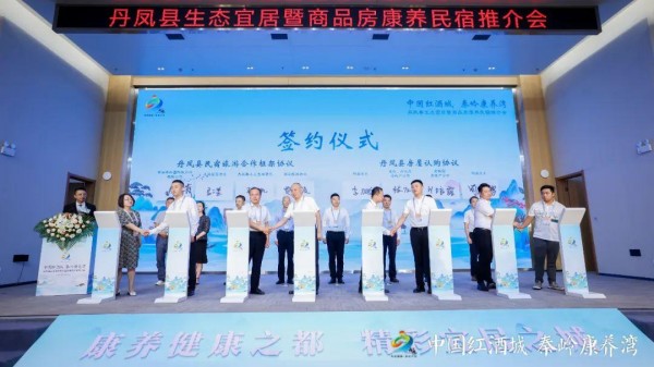 商洛市委常委、宣傳部部長賈永安,丹鳳縣委書記郭安貴分別致辭,丹鳳縣委副書記、縣長吳春亮推介丹鳳縣文旅康養(yǎng)及宜居產(chǎn)業(yè),丹鳳縣委常委、副縣長路漫游宣讀《丹鳳縣購買商品房、民宿租賃優(yōu)惠政策》。