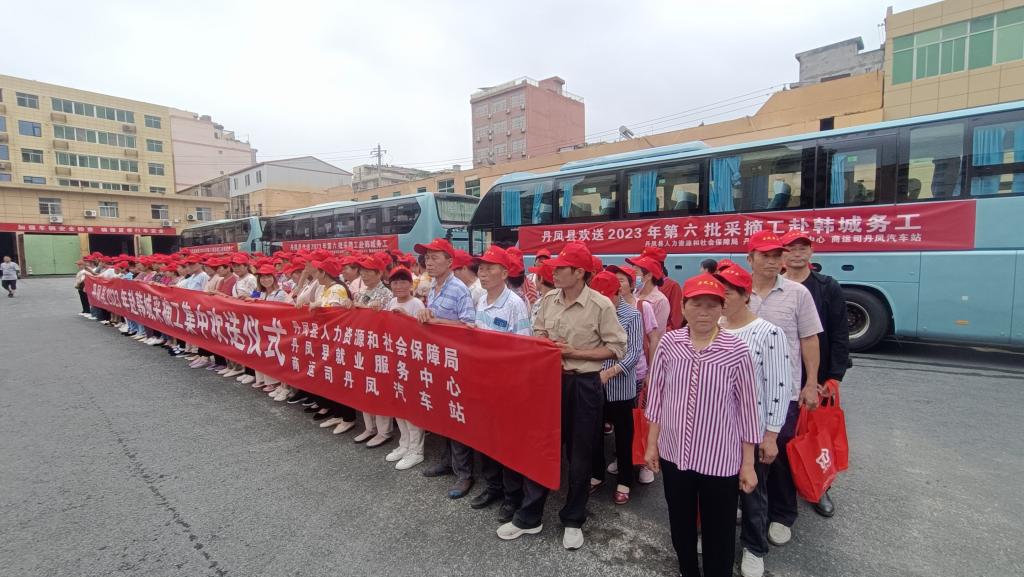 8月8日,丹鳳縣汽車站人群涌動,車流如織,歡送農(nóng)民工外出務(wù)工的橫幅標(biāo)語隨處可見,一條內(nèi)容為“丹鳳縣歡送2023年第六批采摘工赴韓城務(wù)工”的標(biāo)語格外引人注目!原來,由丹鳳縣人力資源和社會保障局牽頭、丹鳳縣就業(yè)服務(wù)中心組織,丹鳳縣汽車站鼎力配合的2023年第六批200余名采摘工前往韓城市摘花椒的集中歡送儀式在這里舉行。