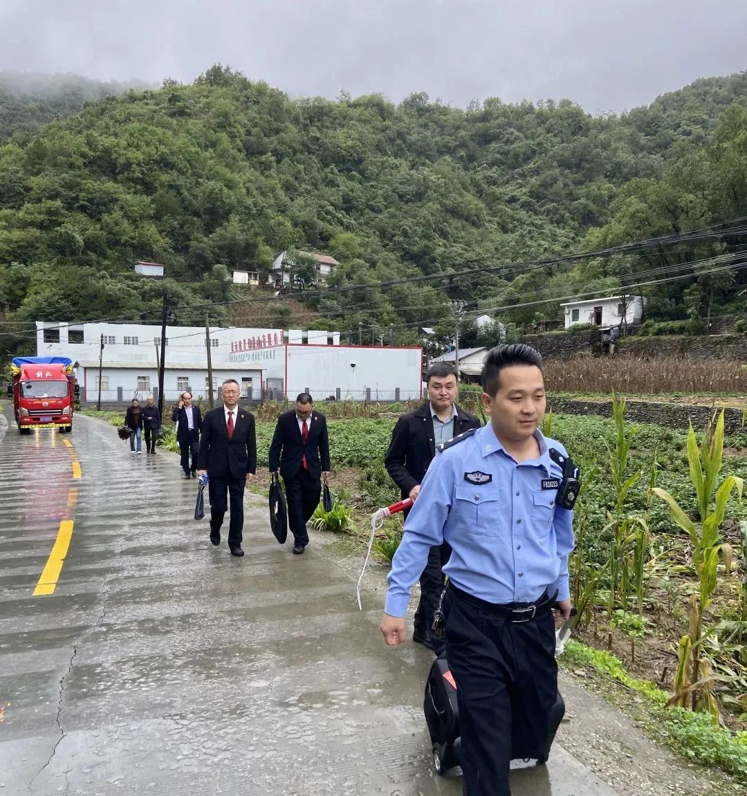 9月26日,秋季的秦嶺山區(qū),陰雨連綿,冷意漸濃。一輛警車行使于蜿蜒曲折的盤山路。車上,商洛中院民一庭法官王金新囑咐著干警開庭工作事項。為了方便群眾訴訟,就地化解矛盾,王金新帶著法官助理、書記員、法警一行,趕赴130公里外的轄區(qū)山陽縣漫川鎮(zhèn)一處偏遠村莊,采用巡回審判方式,入戶審理一起健康權糾紛。