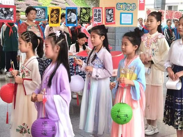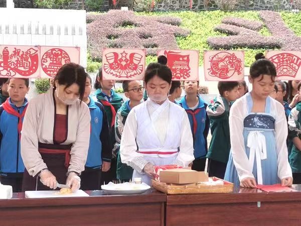 多活動,搭建育人平臺。走近中院,只見同學們忙得不亦樂乎。剪紙的小心翼翼,繪畫的聚精會神,祭月的端莊優(yōu)雅,琴棋書畫,吹拉彈唱,好一番高雅之場景,不光大飽眼福,還可以品嘗到師生親自做的月餅。展現(xiàn)的傳統(tǒng)文化活動形式多樣,豐富出彩。每年秋季,中秋國慶基本兩相連。該校以秋季“雙節(jié)”和春末夏初端午節(jié)為契機,以“祭月、剪紙、書畫、美食、端午”活動為載體,將端午文化、中秋文化、國慶文化融進校園,融進課堂,厚植傳統(tǒng)文化底蘊,達到“潤物無聲”育人目標。