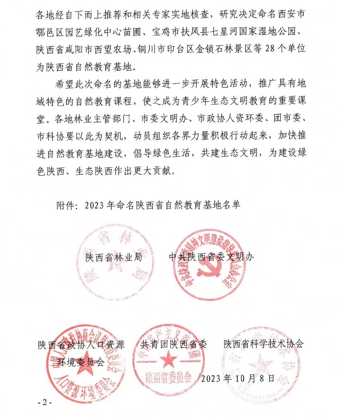 新西部網(wǎng)消息(通訊員魯悠悠 余正娥)近日,陜西省林業(yè)局、中共陜西省委文明辦、陜西省政協(xié)人口資源環(huán)境委員會(huì)、共青團(tuán)陜西省委、陜西省科學(xué)技術(shù)協(xié)會(huì)聯(lián)合發(fā)布《關(guān)于命名2023年陜西省自然教育基地的決定》,旬陽市太極城森林公園成功入選,10月13日在寶雞市舉行了授牌儀式。