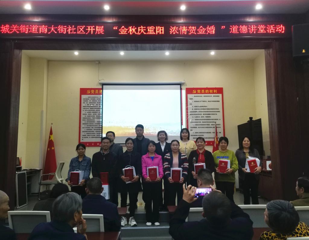 歲歲重陽,今又重陽。10月18日下午,城關(guān)街道南大街社區(qū)聯(lián)合轄區(qū)單位商南縣環(huán)境局開展了“金秋慶重陽.濃情賀金婚”道德講堂活動,傳承中華民族尊老愛老敬老傳統(tǒng)美德,深入推進(jìn)新時(shí)代文明實(shí)踐工作。