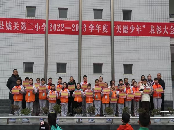 近日,嵐皋縣城關(guān)第二小學(xué)舉行了2023年美德少年表彰大會(huì),該校27名同學(xué)被評(píng)為2023年美德少年。