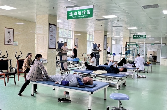 在中醫(yī)藥特色康復(fù)示范中心,康復(fù)團(tuán)隊以中醫(yī)診療技術(shù)為特色,結(jié)合現(xiàn)代康復(fù)方法,每年為1000余名心腦血管后遺癥及頸肩腰腿疼等患者提供康復(fù)治療,墻上掛著的一面面錦旗展現(xiàn)出患者對他們的認(rèn)可。