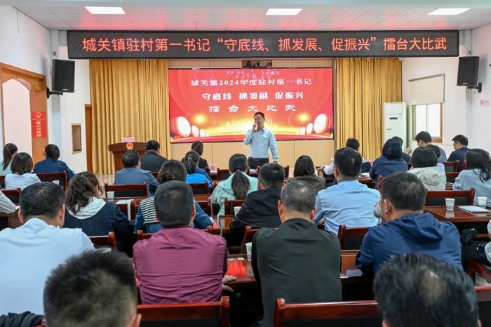 為進一步激發(fā)駐村第一書記立足崗位、干事創(chuàng)業(yè)的工作熱情,充分發(fā)揮抓黨建促鄉(xiāng)村振興“頭雁效應”,營造干事創(chuàng)業(yè)、比學趕超的濃厚氛圍。4月23日,城關鎮(zhèn)舉辦2024年駐村第一書記“守底線、抓發(fā)展、促振興”擂臺賽。鎮(zhèn)黨政班子、駐村第一書記、全體鎮(zhèn)干部110余人參加活動。