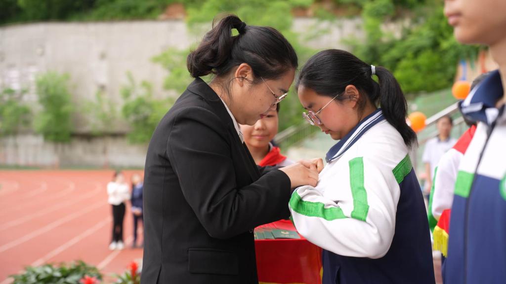 旬陽市城關(guān)二中團(tuán)委書記劉世俊宣讀新團(tuán)員名單,出席活動的領(lǐng)導(dǎo)上臺為新團(tuán)員頒發(fā)團(tuán)章、團(tuán)員證,佩戴團(tuán)徽。隨后,在學(xué)校團(tuán)支部書記的帶領(lǐng)下,新團(tuán)員舉起右手,向團(tuán)旗莊嚴(yán)宣誓,嘹亮誓言回蕩會場,堅定信念根植心中。