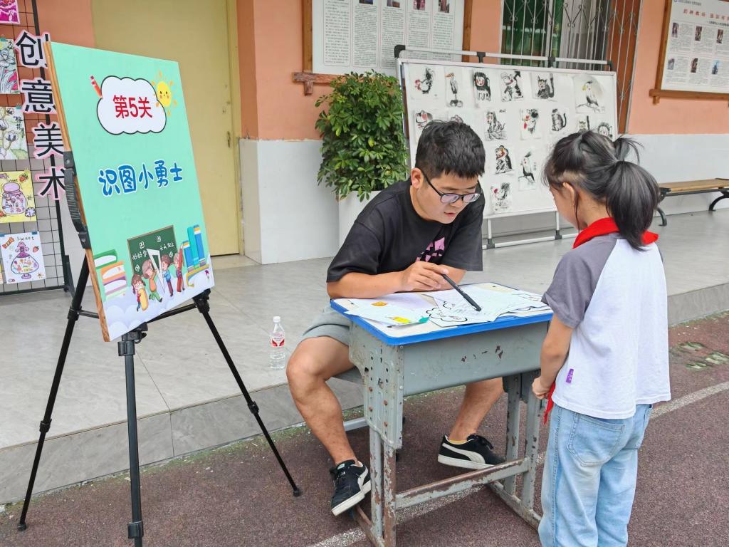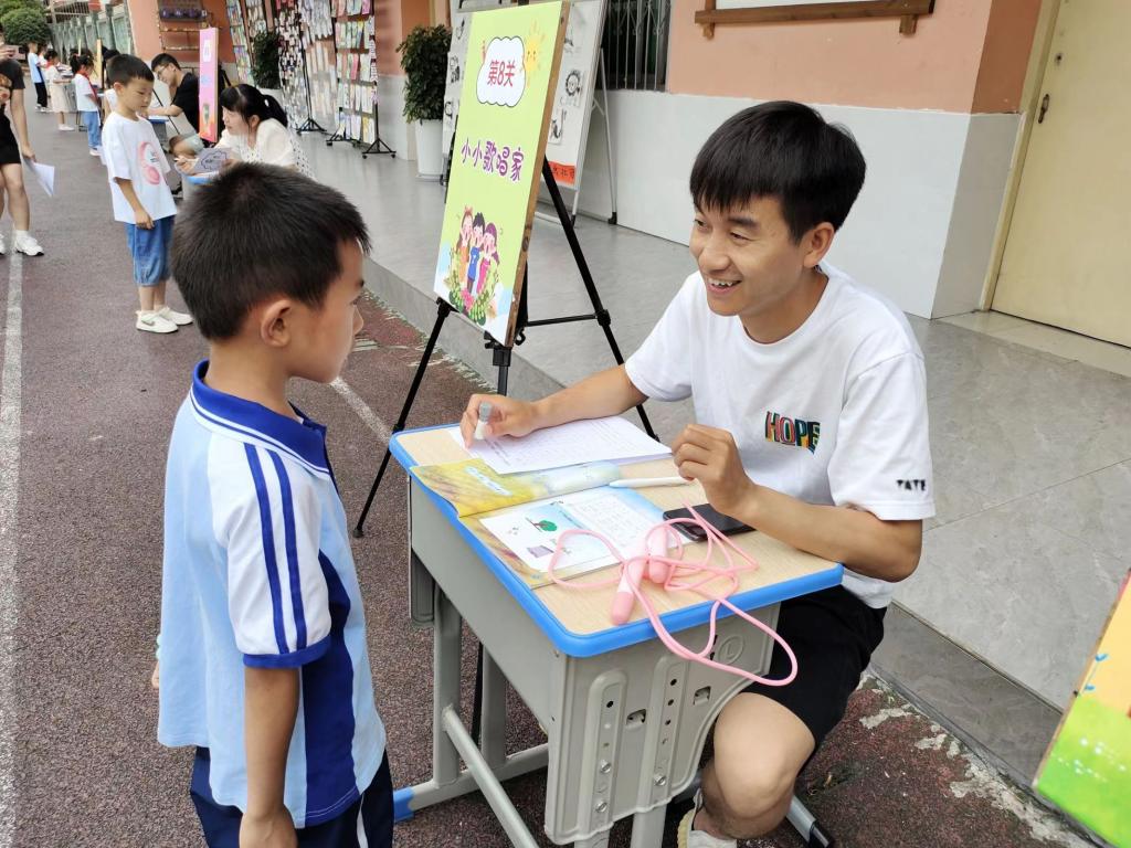 活動現場,孩子們分成小組,拿著自己的記錄表依次闖關。在各闖關環(huán)節(jié)過程中面對測評既興奮又緊張,有的自然大方,對答如流;有的雙眉緊鎖,思考深入;有的動手操作,毫不遜色……對于他們來說,每一個關卡都充滿了吸引力,各種新穎、好玩的游戲考題讓孩子們“考”得非常盡興?;顒咏Y束后,學生熱烈交流著自己闖關的體會,展示自己的闖關成果,臉上洋溢著童真和笑容。