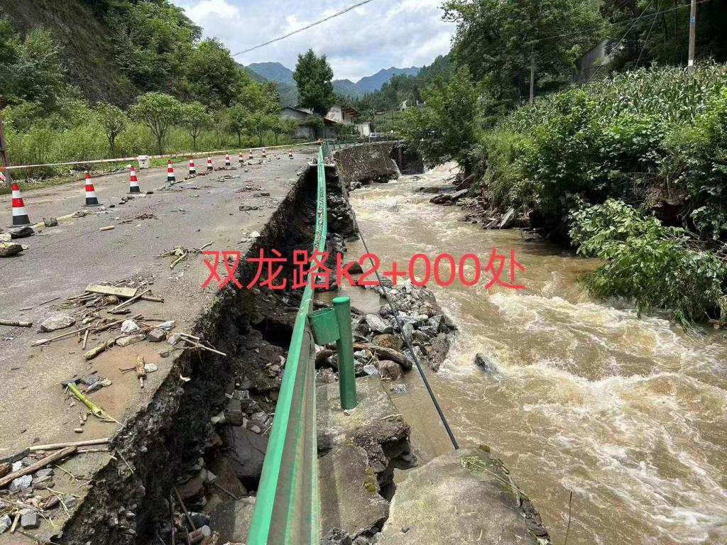 本次兩鎮(zhèn)共有2條新增省道(S524漢雙二級路、S213濱漢線)、1條縣鄉(xiāng)公路(雙龍路)、43條村組道路遭到嚴(yán)重水毀災(zāi)害。先后造成交通中斷19處,累計沖毀路基13.968公里,沖毀路面4.73萬平方米,擋墻垮塌180處6.78萬立方米,公路內(nèi)側(cè)塌方107處約2.774萬立方米,涵洞損毀27道,沖毀(損壞)橋梁59座,安防設(shè)施2.981公里,站場房損失1(雙河口古鎮(zhèn)服務(wù)區(qū))。