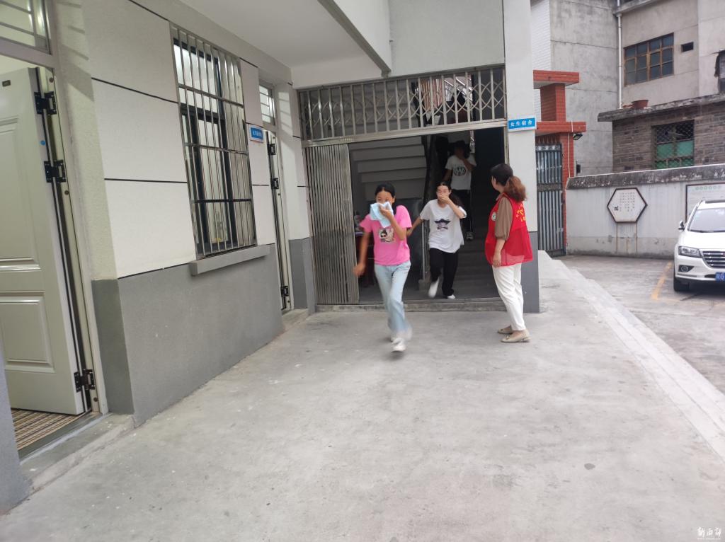 下午六時(shí),隨著一陣急促的警報(bào)聲的響起,全校師生迅速按照預(yù)先規(guī)劃的疏散路線,手捂口鼻,彎著腰,貓著步,快速小跑,從宿舍有序地撤離到安全地帶。整個(gè)過程中,師生們保持了高度的警覺性和紀(jì)律性,展現(xiàn)出了良好的應(yīng)急反應(yīng)能力。