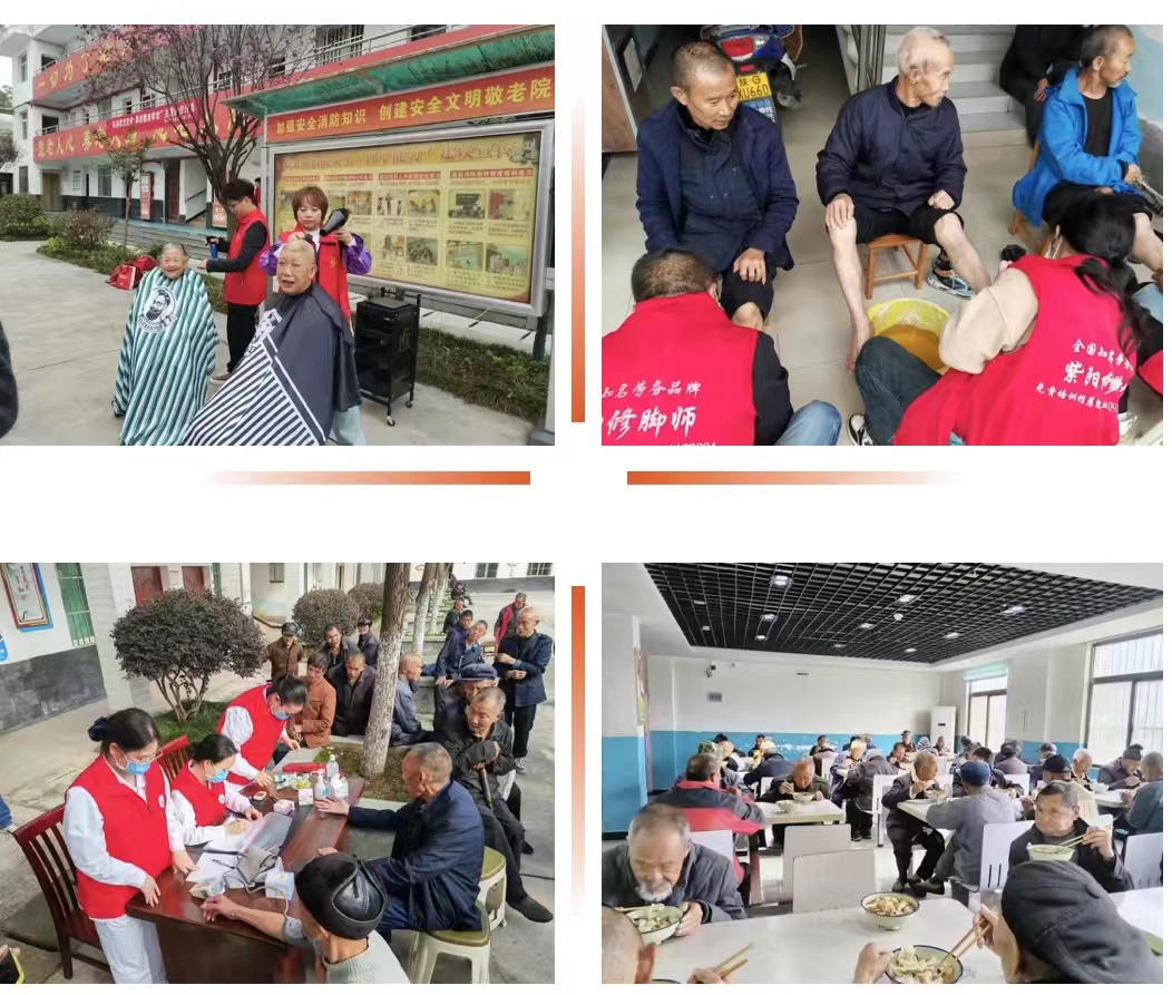 10月11日,紫陽縣民政局組織并邀請各單位于敬老院舉辦重陽節(jié)孝老敬親主題活動。志愿者們?yōu)槔先藗冃弈_,剪頭發(fā),修整儀容,清爽利落的造型讓老人們精神煥發(fā)。中醫(yī)院醫(yī)護(hù)人員也來到院里為老人免費(fèi)義診,耐心講授健康養(yǎng)生知識。隨后,志愿者們與院內(nèi)工作人員一同為老人包餃子,將滿滿的關(guān)懷和祝福包裹在餃子中,讓他們感受到家的溫暖和幸福。與此同時,蒿坪敬老院與漢王敬老院相繼也開展了敬老文藝匯演,一個個精彩紛呈的節(jié)目讓舞臺下的老人們臉上洋溢著滿足和幸福的笑容。