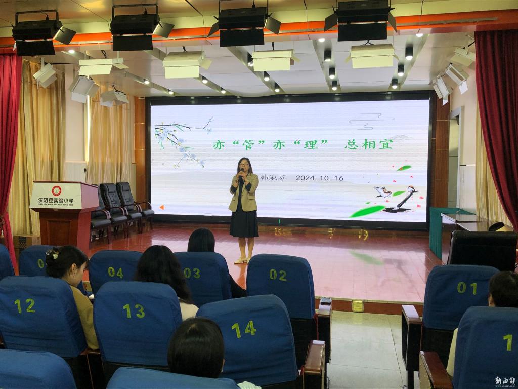 新西部網(wǎng)訊(通訊員 趙風(fēng)廷)為落實(shí)立德樹人根本任務(wù),切實(shí)加強(qiáng)班主任隊(duì)伍建設(shè),強(qiáng)化學(xué)校德育工作管理,助推學(xué)校德育工作及班級(jí)管理水平邁向新高度。10月15日中午,漢陰縣實(shí)驗(yàn)小學(xué)在大會(huì)議室召開了班主任工作專項(xiàng)培訓(xùn)會(huì)。培訓(xùn)會(huì)由德育主任曹倩主持,特邀江蘇溧陽掛職指導(dǎo)副校長——常州市骨干教師、溧陽市學(xué)科帶頭人、常州市優(yōu)秀黨務(wù)工作者、溧陽市師德標(biāo)兵韓淑芬副校長為與會(huì)人員進(jìn)行主題為《亦“管”亦“理”總相宜》的培訓(xùn)講座。