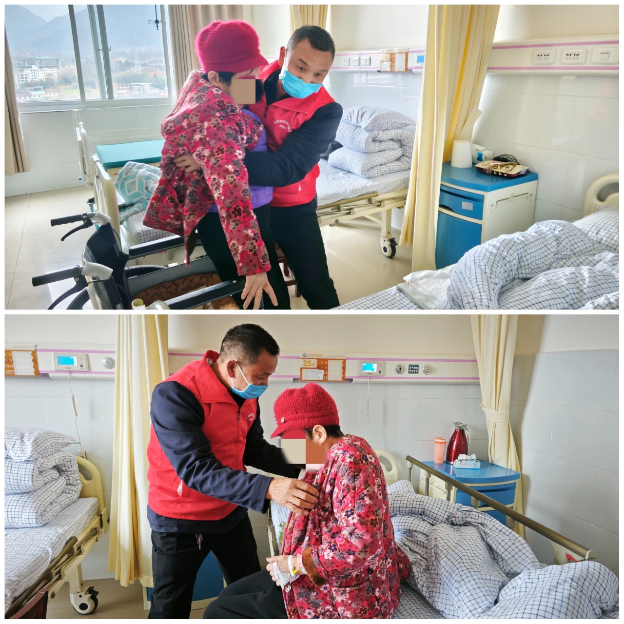 熊奶奶是目前收治患者中年齡最大的一位常年冠心病患者,家里兒女常年都在外地工作。入院時,熊奶奶因為拉肚子脫水致頭暈、乏力,生活自理已經(jīng)受到影響。基于患者這種情況,醫(yī)生護士特意交代護理員小張,平時不定時就到熊奶奶身邊陪護,幫助打開水、買飯、取檢查結果,用推車推著熊奶奶去做檢查、取檢查結果……“紅馬甲”忙碌的身影時刻穿梭在熊奶奶身邊,看在熊奶奶眼里,卻感動著病區(qū)的每個患者和家屬?!凹胰诉h在千里之外,生病時小張卻像親人一樣陪伴在自己身邊,雖然說住院這件事本身不美好,但在這里我覺得也不至于那么糟糕……”,熊奶奶眼里泛著淚光感動的說。