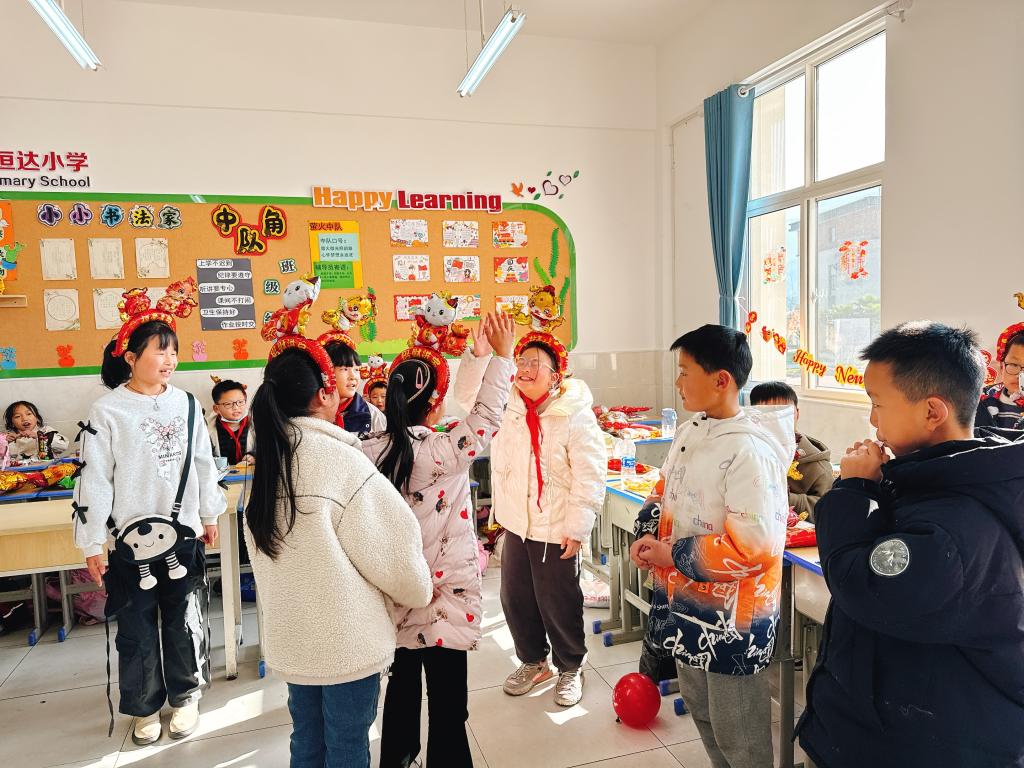 班級聯(lián)歡會(huì)是漢陰縣恒達(dá)小學(xué)元旦聯(lián)歡傳統(tǒng)項(xiàng)目之一,以班級為單位開展的慶?;顒?dòng)。活動(dòng)前,在師生共同策劃下,布置、裝飾教室,簡單樸素卻又不失溫馨?;顒?dòng)中,各個(gè)班級“八仙過海,各顯神通”,活動(dòng)形式有趣、多樣。有優(yōu)雅曼妙的舞蹈才藝表演秀,有幽默詼諧的小品展和炫酷的師生個(gè)人才藝展,再加上妙趣橫生的斗智小游戲……節(jié)目精彩紛呈,歡聲笑語充滿校園。學(xué)校領(lǐng)導(dǎo)班子成員,走進(jìn)班級為班級送上新年祝福,為班級增添了歡樂,增加了動(dòng)力。
