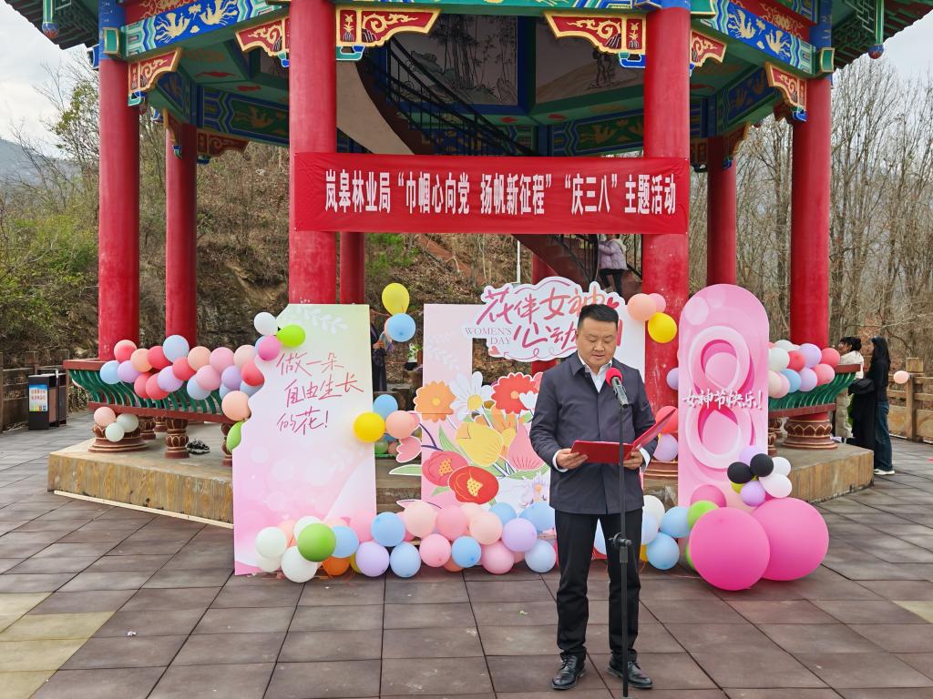 活動(dòng)伊始,嵐皋縣林業(yè)局黨委書記、局長張修鵬發(fā)表熱情洋溢的致辭。他首先向全體女性干部致以節(jié)日問候,并高度贊揚(yáng)她們在林業(yè)戰(zhàn)線的辛勤耕耘與默默付出,強(qiáng)調(diào)了她們?yōu)槭刈o(hù)綠水青山、推動(dòng)嵐皋縣綠色發(fā)展作出的重要貢獻(xiàn)。同時(shí),鼓勵(lì)大家繼續(xù)發(fā)揚(yáng)女性“半邊天”的精神,在生態(tài)文明建設(shè)的新征程中,勇挑重?fù)?dān),再創(chuàng)新的輝煌。