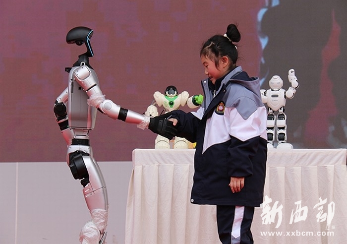 新西部網(wǎng)訊(通訊員王 鑫 許啟軍)在2025蛇年春晚的舞臺上,《秧BOT》節(jié)目中身穿花棉襖、舞姿靈動的機(jī)器人火爆出圈,激發(fā)了人們對未來科技的無限憧憬與期待。3月7日,與春晚里“同廠”的機(jī)器人在陜西省石泉縣城關(guān)二小驚艷亮相。當(dāng)天,石泉縣城關(guān)二小與安康市科技館聯(lián)合開展科普進(jìn)校園活動,為全校師生帶來一場極具魅力的科技盛宴。