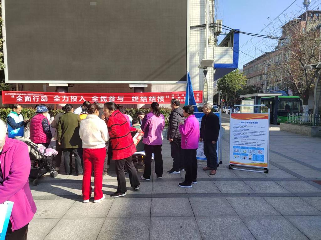 活動現(xiàn)場設(shè)置咨詢臺、懸掛主題橫幅、發(fā)放宣傳單(冊)、擺放宣傳展板、開展義診咨詢400余人次,向群眾講解結(jié)核病防控核心知識和相關(guān)惠民政策,發(fā)放宣傳資料1000余份,免費為群眾測量血壓并發(fā)放“84”消毒液等禮品。