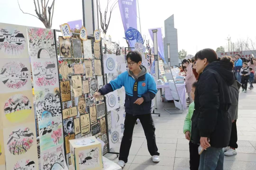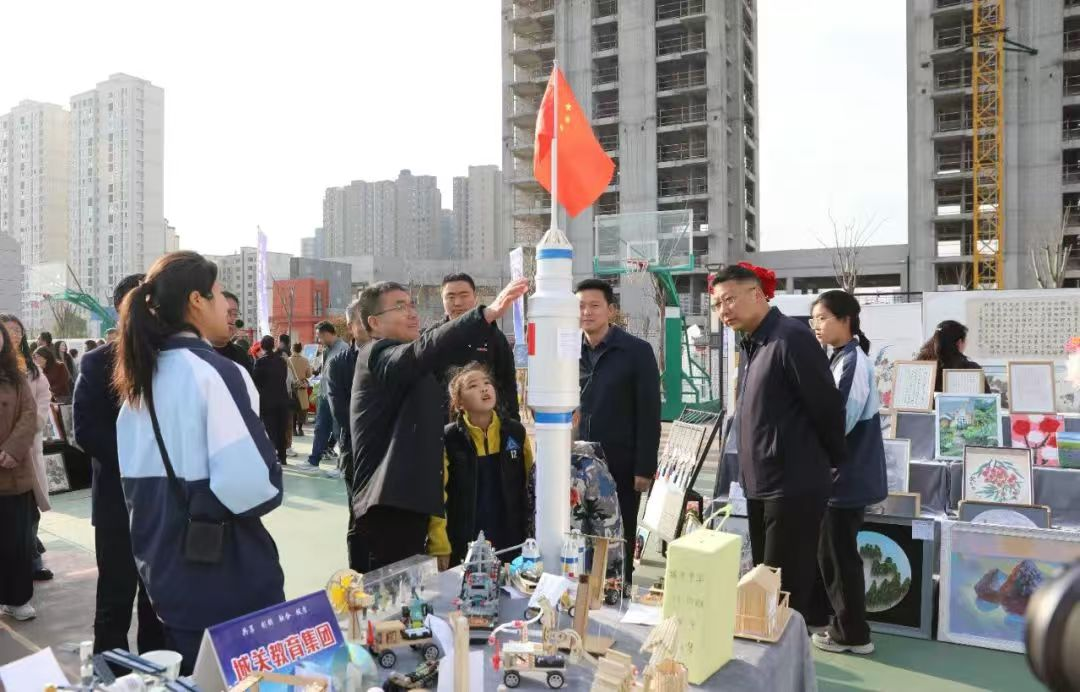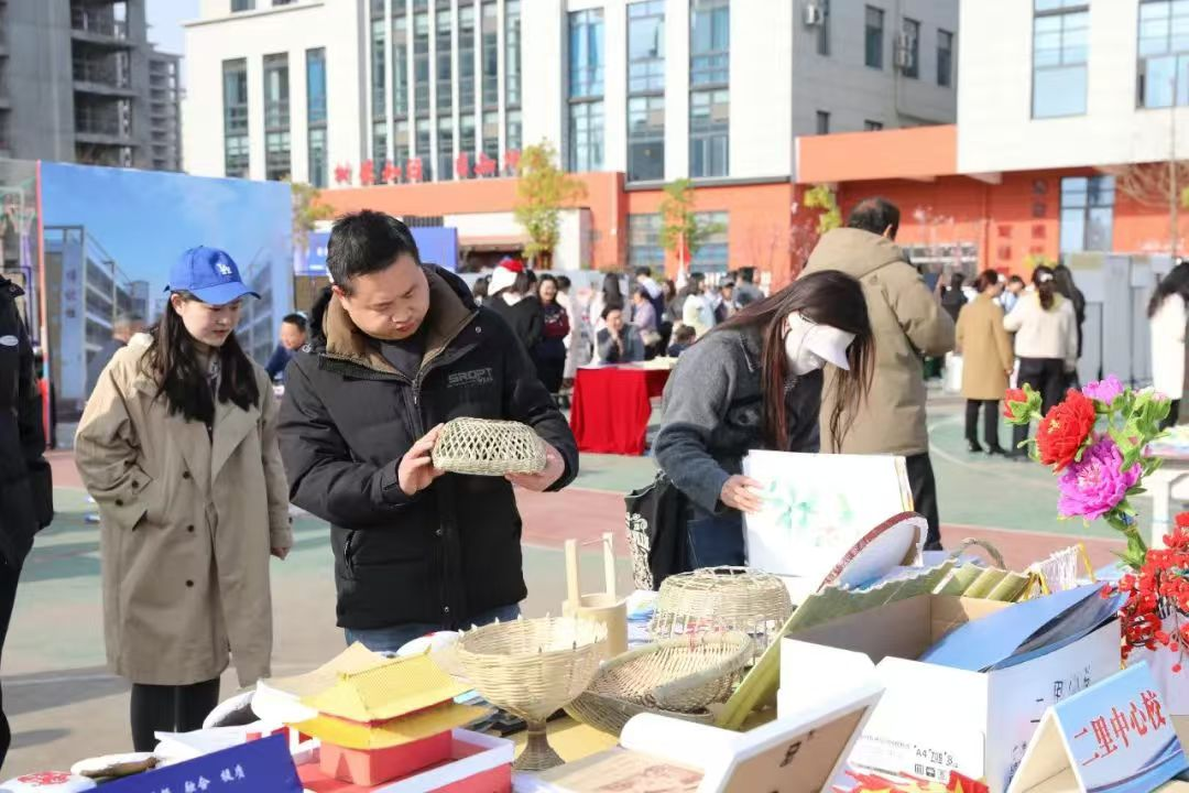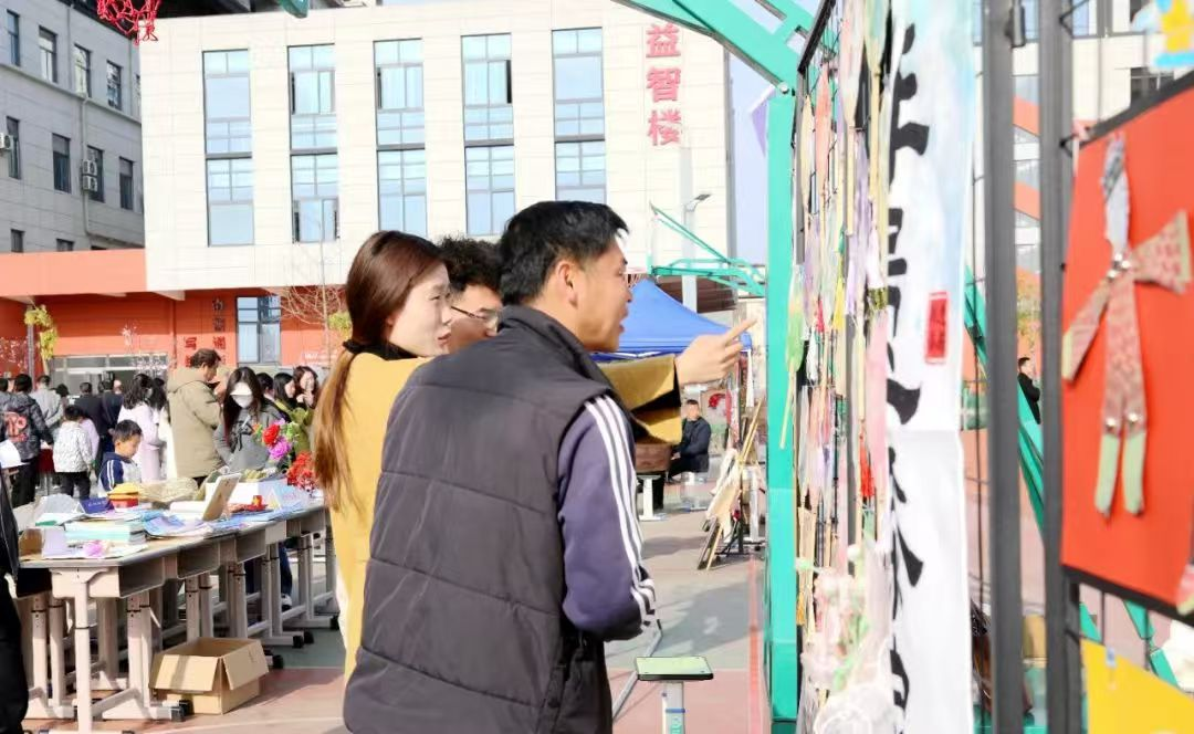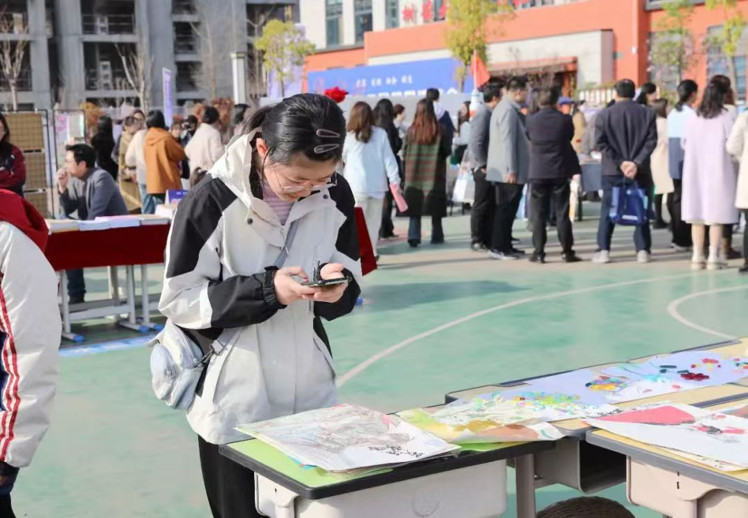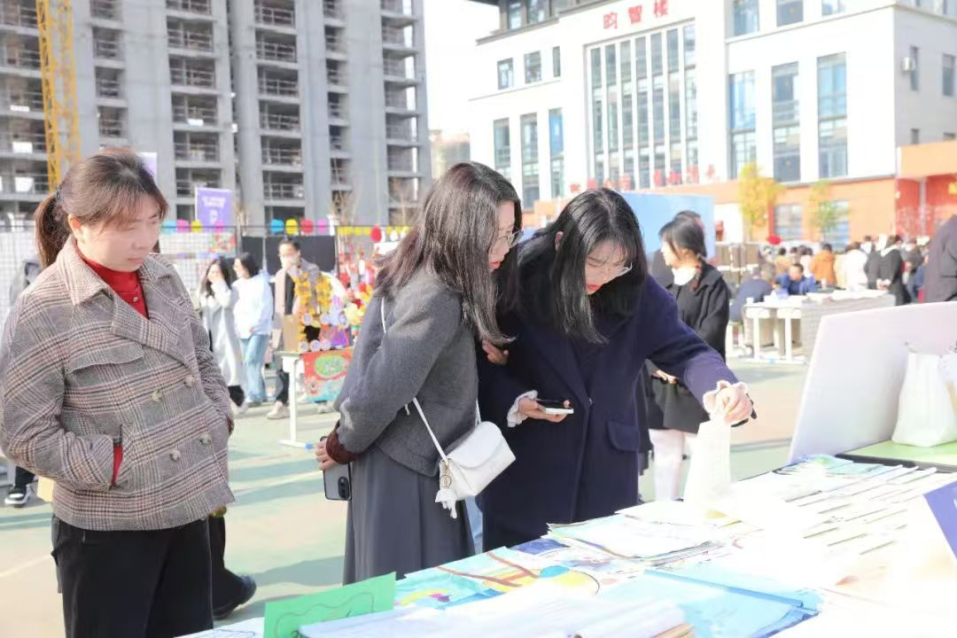 36個(gè)展位人流如織,參與活動(dòng)的師生群眾紛紛駐足,觀看學(xué)生手工制作,教師基本功展示,評(píng)閱教師備課、學(xué)生作業(yè)、分享教育教學(xué)經(jīng)驗(yàn)。