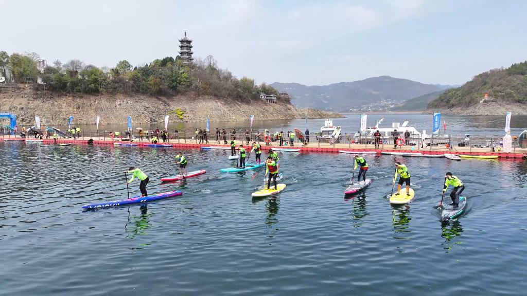 第三屆陜西安康生態(tài)運動會瀛湖槳板競速賽現(xiàn)場