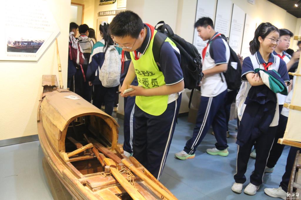 在航運(yùn)博物館內(nèi),一艘百年木帆船模型前,工作人員滿懷深情地講述道:“大家看這些斑駁的船板,它們不僅是歲月的見證者,更承載著漢江兒女‘通達(dá)四海,信義為本’的精神密碼?!被顒?dòng)策劃者陳雅芹副校長(zhǎng)表示,此次研學(xué)活動(dòng)特別設(shè)計(jì)了長(zhǎng)達(dá)18公里的環(huán)線,這不僅是對(duì)學(xué)生意志力的一次重大考驗(yàn),更是一次通過“走讀家鄉(xiāng)”的獨(dú)特方式,喚醒學(xué)生們對(duì)家鄉(xiāng)文化的認(rèn)同感與歸屬感。正如支部書記吳曉偉在授旗儀式上所講:“當(dāng)課本里抽象的‘山水太極’真實(shí)地呈現(xiàn)在孩子們眼前,文化的種子便已在他們心中悄然種下,生根發(fā)芽?!?/p>