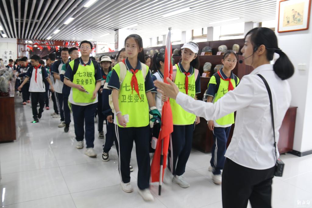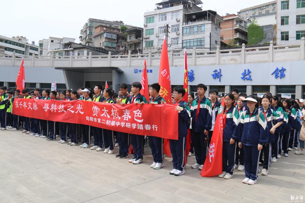 晨光初露時(shí),旬陽(yáng)市第二初級(jí)中學(xué)操場(chǎng)旌旗獵獵。隨著徐強(qiáng)校長(zhǎng)“出發(fā)”指令落下,身著清新淺綠校服的莘莘學(xué)子們,迅速且整齊地排列成隊(duì),邁著矯健而堅(jiān)定的步伐有序前行。此刻,他們宛如穿越時(shí)光隧道的文明使者,即將開啟一場(chǎng)探秘之旅。七年級(jí)隊(duì)伍如游龍般穿行天池路、健康路,駐足旬陽(yáng)歷史博物館,聆聽古老的青銅器講述商周文明;八年級(jí)學(xué)子則穿越黃虎西路,在航運(yùn)博物館的船模陣列間觸摸漢江航運(yùn)千年脈動(dòng)。科技館的智能交互與洞兒扁棧道的青翠山色相映成趣,水磨灣的粼粼波光映照著少年們求知若渴的面龐。