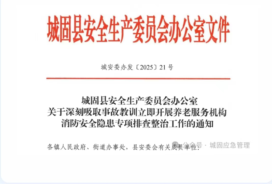 漢中:迅速部署,立即行動(dòng)!城固縣開展養(yǎng)老服務(wù)機(jī)構(gòu)消防安全隱患專項(xiàng)排查整治