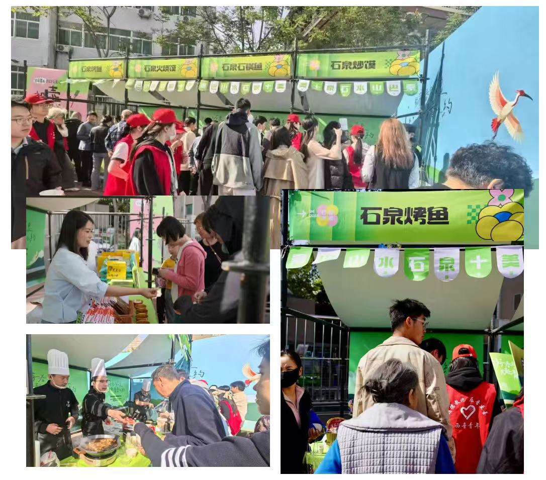 活動現(xiàn)場,“石泉食美市集”煙火氣十足。熱氣騰騰的石鍋魚、地道傳統(tǒng)的炒饃、煙火氣十足的烤魚、獨(dú)具風(fēng)味的火燒饃……現(xiàn)場制作的美食散發(fā)出誘人香氣,吸引著師生們紛紛停下腳步,細(xì)細(xì)品鑒,不少品嘗過后的師生贊不絕口,直言迫不及待奔赴石泉深度體驗(yàn)一場“舌尖之旅”。