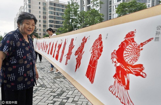 看過《水滸傳》,看過書畫上的108將,可是,你見過用紙剪出的108將嗎?83歲老人李容斌,歷時一年半時間,用紅色宣紙剪出了108將,每一個都栩栩如生,每一個都富有特色。李榮斌把剪成的108將裝裱起來,足有40米長,見到的人都贊口不絕。