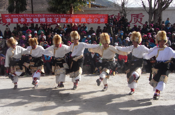 作為保護(hù)傳統(tǒng)民族文化的一部分,2005年,文化社第一次組織了弦子擂臺(tái)賽,取名為“首屆卡瓦格博民間文化節(jié)”。未料想,吸引了16支隊(duì)伍前來報(bào)名,從此,弦子擂臺(tái)賽便成為了文化社的另一項(xiàng)常規(guī)活動(dòng)。截至目前,此項(xiàng)活動(dòng)已舉辦了十余次,百余支參賽隊(duì)涵蓋50余個(gè)村寨,直接參賽者超過2000人。