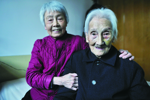 王金菊,101歲,四川資陽(yáng)人。她的女兒李靜華,也已經(jīng)79歲,是航天四院退休技術(shù)人員。2015年,李靜華最開心的事兒,是老人又添一歲。王金菊老人一生只有一個(gè)女兒,老伴在女兒出生八個(gè)月時(shí)參軍奔赴抗日前線,通過(guò)兩封家書后就沒(méi)了音訊。老人一個(gè)人在農(nóng)村,靠干農(nóng)活把女兒拉扯大,并供養(yǎng)女兒上了大學(xué)。女兒大學(xué)畢業(yè)到西安工作,就把老人也從老家接了過(guò)來(lái)。老人來(lái)女兒家也閑不住,幫助女兒照料兩個(gè)兒子以及后來(lái)的孫子。李靜華丈夫是大學(xué)同班同學(xué),對(duì)老人十分孝敬,老人把女婿當(dāng)兒子一樣看待。1989年,女婿去世的時(shí)候,老人十分難過(guò),很長(zhǎng)一段時(shí)間吃不下飯。李靜華說(shuō),老人對(duì)家貢獻(xiàn)很大,希望老人長(zhǎng)壽,好有更多的機(jī)會(huì)和時(shí)間陪伴孝敬老人。