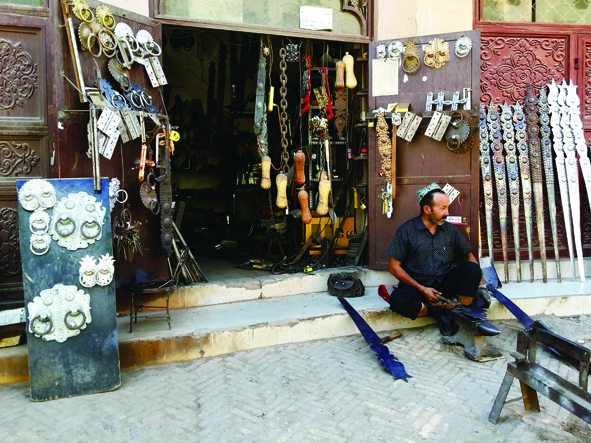 鐵器制造在喀什是一種文化,千年之前喀喇漢王朝非常興盛,緊鄰?fù)鯇m的“喀日克大門”(打靶之門)里,有士兵經(jīng)常列隊出操,于是,這一帶遍布修理兵器的作坊,后來逐漸演化成了傳統(tǒng)民族手工業(yè)。