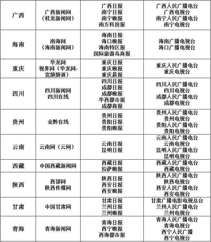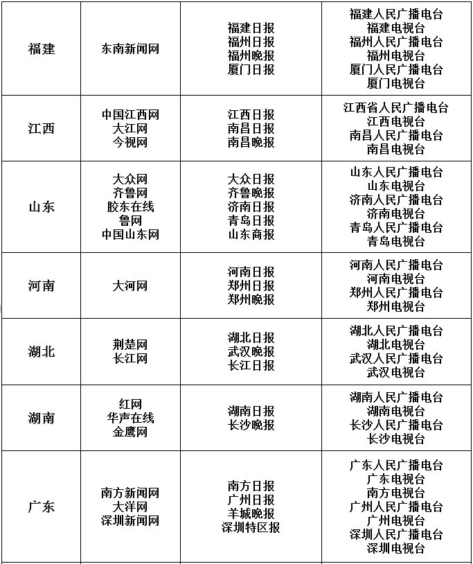 可供網(wǎng)站轉載新聞的新聞單位名單