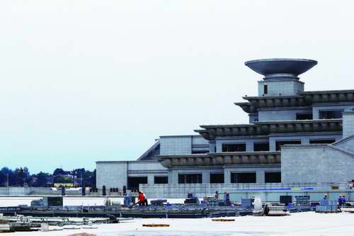 ▲法門寺文化景區(qū)為迎接世佛聯(lián)大會(huì),許多地方正在加緊施工。