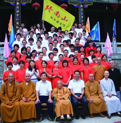 ▲心一居士(二排右一)是終南山佛教文化夏令營(yíng)的熱心組織者