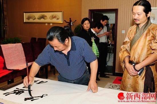 三秦書畫院副院長(zhǎng)著名書法家郭福泉揮毫獻(xiàn)藝。