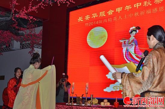 “花好月圓”長(zhǎng)安華服甲午中秋祭月聯(lián)誼會(huì),暨2014陜西精英人士中秋祈福感恩交流會(huì)正是在弘揚(yáng)傳統(tǒng)文化的主題思想下,于9月6日下午在長(zhǎng)安區(qū)子午大道秦北世紀(jì)花園中心成功舉辦,本次傳統(tǒng)祭月聯(lián)誼活動(dòng)是長(zhǎng)安華夏民族服飾文化研究聯(lián)誼會(huì)發(fā)起與新西部雜志社、姜姍秀華夏民族服飾會(huì)館等相關(guān)機(jī)構(gòu)共同主辦,旨在弘揚(yáng)中華傳統(tǒng)文化,踐行中國(guó)夢(mèng),宣傳拯救保護(hù)華夏漢民族服飾禮儀相關(guān)非物質(zhì)文化遺產(chǎn),籌備建立“中國(guó)青少年華夏民族服飾體驗(yàn)教育踐習(xí)基地”“華夏民族服飾非物質(zhì)文化遺產(chǎn)保護(hù)展示中心”及籌拍“追尋華夏根?踐行中國(guó)夢(mèng)”非遺紀(jì)錄片,出版發(fā)行相關(guān)書籍。