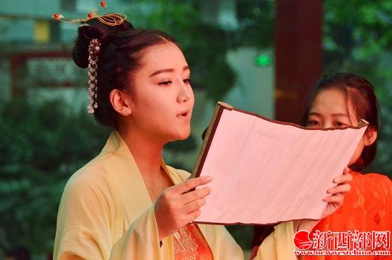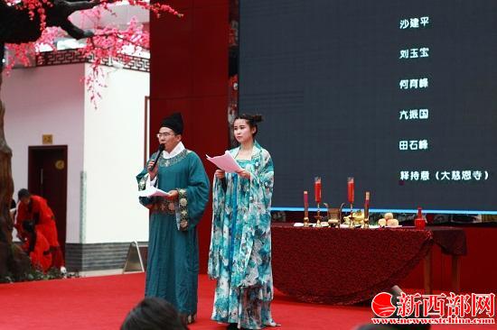 男女主持人身著華服登場(chǎng),的確有點(diǎn)穿越時(shí)空回到大唐王朝的幻覺。