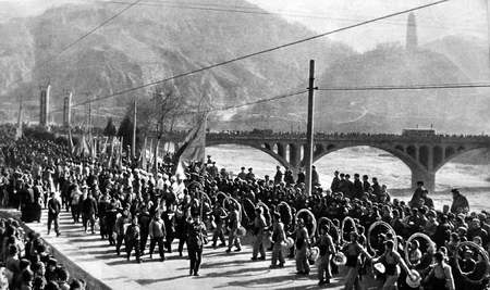 ▲北京知青到達延安時群眾歡迎的場面