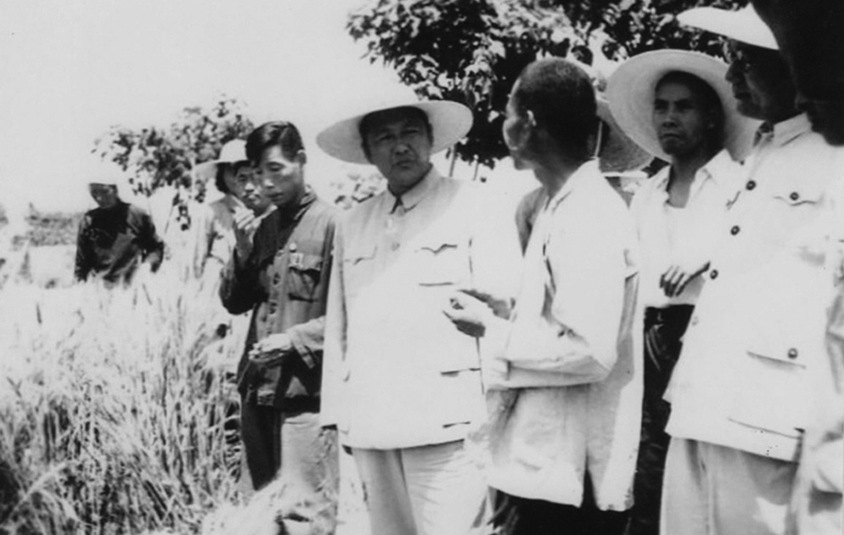 ▲1959年6月6日,習仲勛在陜西渭南雙王公社向農(nóng)民了解小麥生產(chǎn)情況。