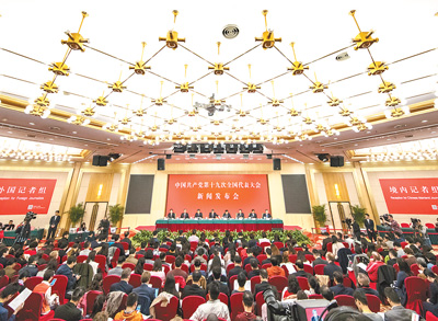 10月26日,中國共產(chǎn)黨第十九次全國代表大會舉行專題新聞發(fā)布會,中外記者積極采訪報道。本報記者史家民攝