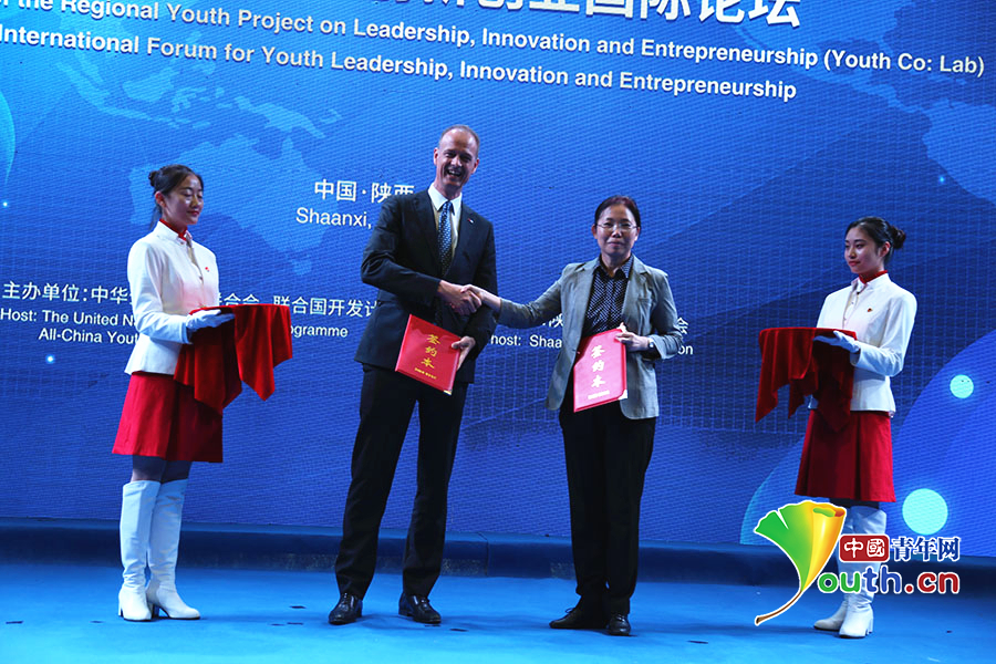 中國青年網(wǎng)西安9月18日電(代紅玉記者高琦)9月18日上午,亞太地區(qū)青年領(lǐng)導(dǎo)力與創(chuàng)新創(chuàng)業(yè)項(xiàng)目(簡稱亞太項(xiàng)目)啟動(dòng)儀式暨青年領(lǐng)導(dǎo)力與創(chuàng)新創(chuàng)業(yè)國際論壇在西安舉辦。全國青聯(lián)副主席汪鴻雁,聯(lián)合國開發(fā)計(jì)劃署駐華代表處副國別主任何佩德出席論壇并致辭。雙方分別代表全國青聯(lián)和聯(lián)合國開發(fā)計(jì)劃署交換了諒解合作備忘錄。