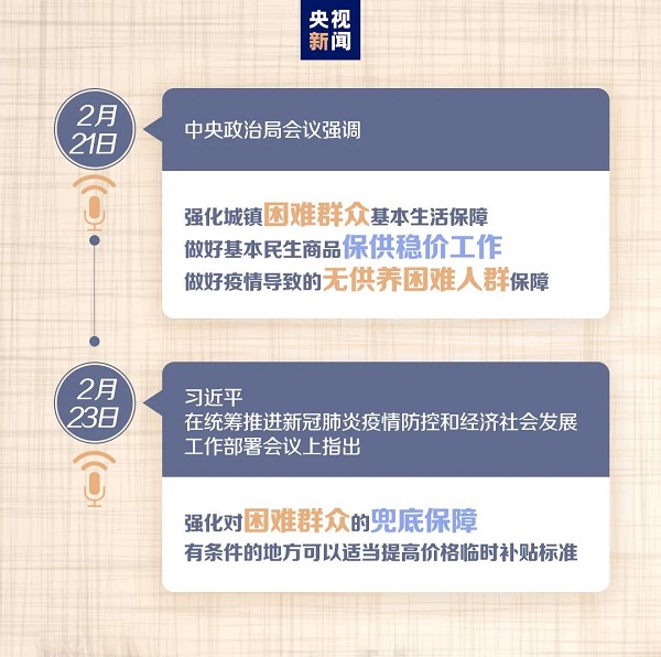 習(xí)近平總書記在湖北考察疫情防控工作時強調(diào),要千方百計保障好群眾基本生活。