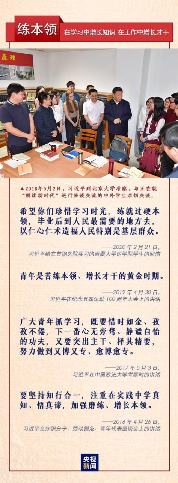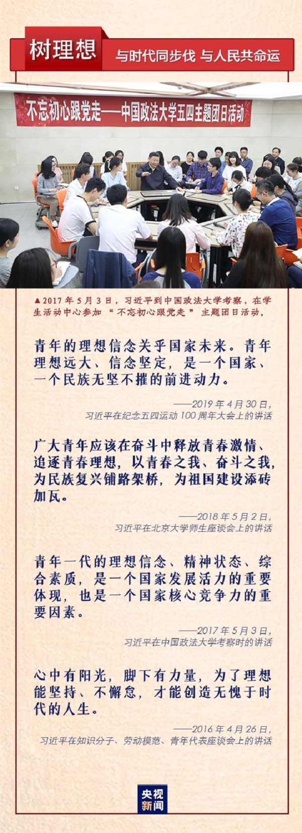 “樹立遠(yuǎn)大理想”“熱愛偉大祖國(guó)”“擔(dān)當(dāng)時(shí)代責(zé)任”“勇于砥礪奮斗”“練就過(guò)硬本領(lǐng)”“錘煉品德修為”,習(xí)近平總書記在紀(jì)念五四運(yùn)動(dòng)100周年大會(huì)上對(duì)新時(shí)代中國(guó)青年提出六點(diǎn)希望,激勵(lì)廣大青年不懼風(fēng)雨、不畏險(xiǎn)阻,在實(shí)現(xiàn)中華民族偉大復(fù)興中國(guó)夢(mèng)的進(jìn)程中不斷開拓創(chuàng)新、奮發(fā)有為。