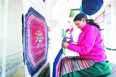 轉(zhuǎn)移就業(yè)讓農(nóng)牧民開啟了新生活。圖為西藏阿里地區(qū)改則縣麻米鄉(xiāng)村民崗增在噶爾縣康樂新居服裝地毯加工廠里工作。新華社發(fā)