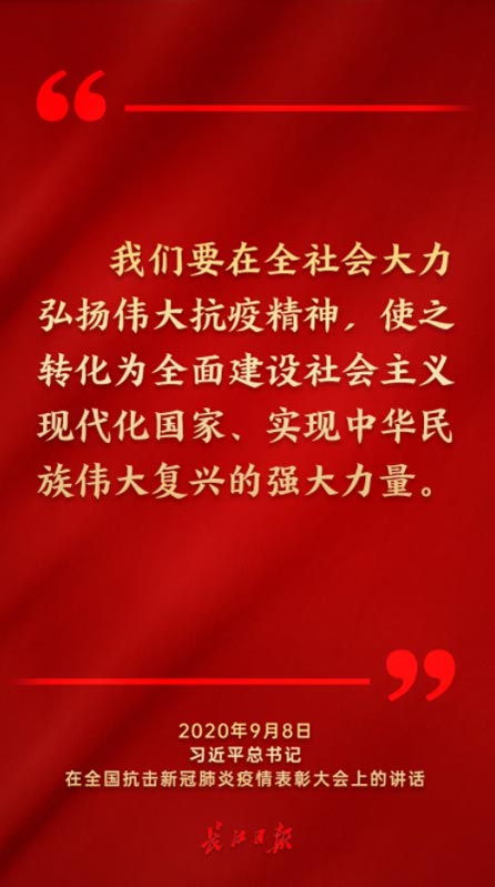 總書記在全國抗擊疫情表彰大會上指出:“我們要在全社會大力弘揚偉大抗疫精神,使之轉(zhuǎn)化為全面建設(shè)社會主義現(xiàn)代化國家、實現(xiàn)中華民族偉大復(fù)興的強大力量?!?/p>