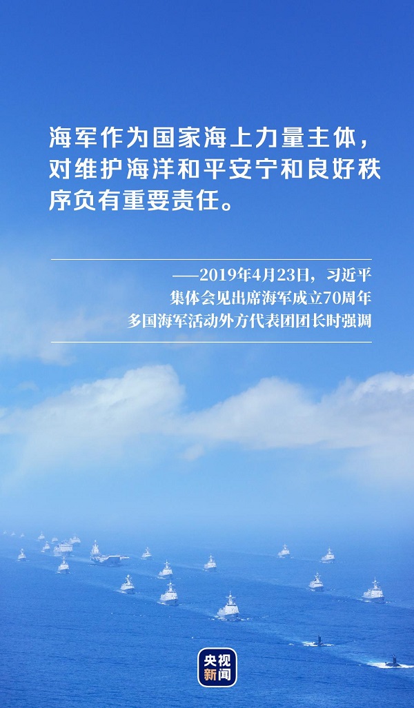 維護(hù)海洋權(quán)益和海洋安全,離不開一支現(xiàn)代化的海軍隊(duì)伍。習(xí)近平指出,建設(shè)一支強(qiáng)大的人民海軍,寄托著中華民族向海圖強(qiáng)的世代夙愿,是實(shí)現(xiàn)中華民族偉大復(fù)興的重要保障。