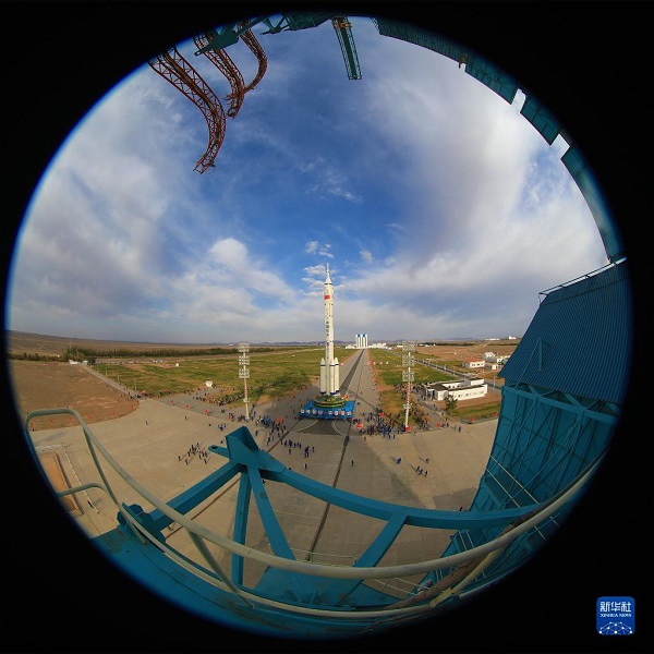 10月7日,神舟十三號載人飛船與長征二號F遙十三運(yùn)載火箭組合體在轉(zhuǎn)往途中。新華社發(fā)(汪江波 攝)