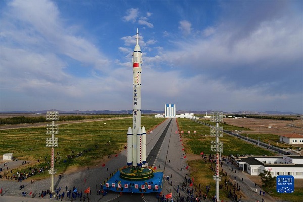 10月7日,神舟十三號載人飛船與長征二號F遙十三運(yùn)載火箭組合體準(zhǔn)備轉(zhuǎn)往發(fā)射區(qū)。新華社發(fā)(汪江波 攝)